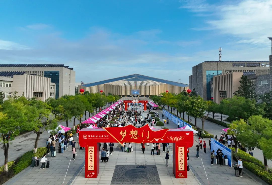 迎新当日,学院内彩旗飘飘、气球环绕,景观大道、图书馆、学生公寓以及道路两旁处处展示着醒目的迎新标语,整个校园朝气蓬勃。