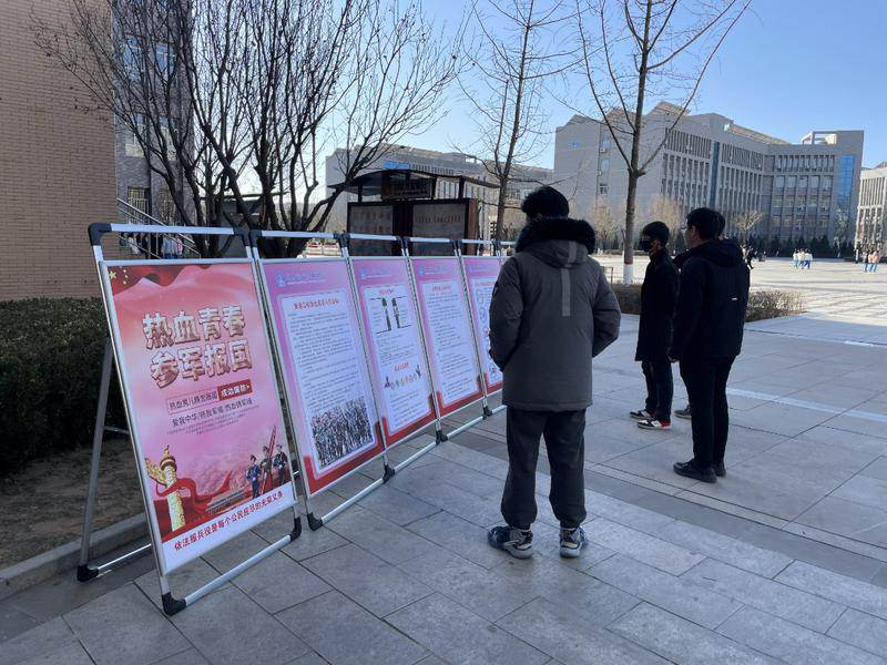 征兵工作站结合今年征兵工作的特点,在前期摆放宣传展板、电子屏滚动征兵宣传标语、悬挂征兵横幅、LED大屏循环播放征兵宣传片、发放征兵宣传单的基础上,积极开展形式多样的“线上”征兵宣传活动,通过微信公众号、校网、辅导员工作群等方式多渠道、全方位宣传大学生入伍政策规定及入伍学生先进典型,做到征兵宣传“全方位、无死角、全覆盖”,营造了“参军入伍,无上光荣”的良好氛围,有效激发了大学生参军热情。