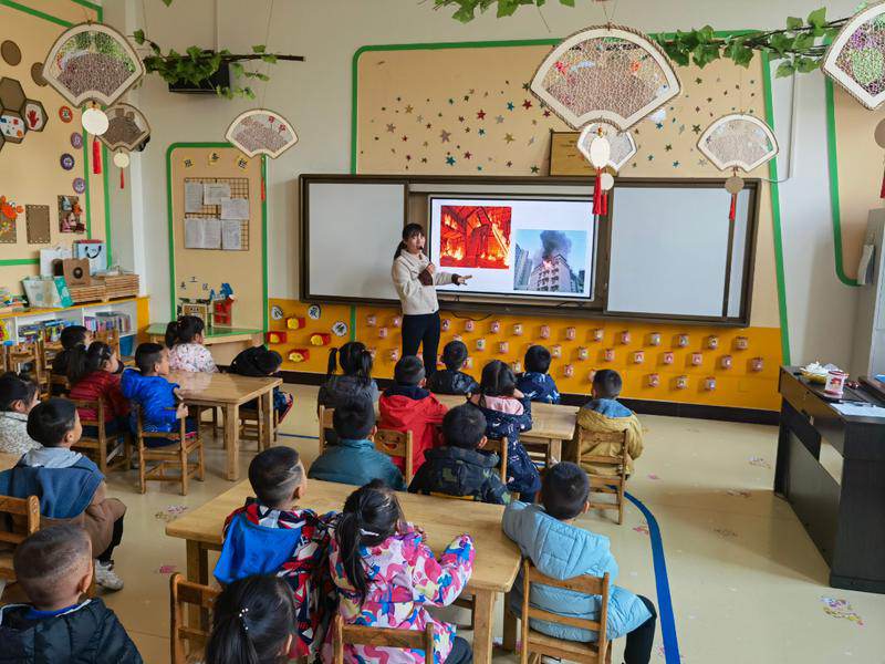 活动前,为了让幼儿能更好地了解防火知识,老师们对幼儿进行了防火安全知识讲解。随着急促的警报声,各位老师立即到达指定岗位,指导幼儿快速疏散,各班教师带领幼儿弯着腰捂住口鼻,沿着指定楼梯口快速前进,有序撤离到幼儿园户外的安全地带,随即各主班教师清点人数,未漏下一名幼儿,未发生任何安全事故。随后,保安现场正确使用灭火器灭火,让师幼进一步提高了面对突发火灾事件的应急自救能力。