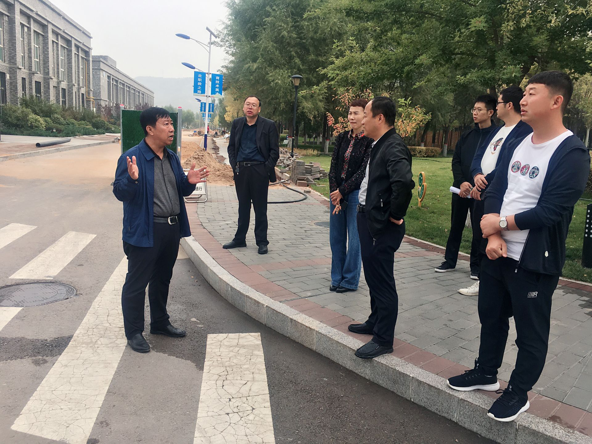 随后,艾校长一行又查看了实训大楼工程的施工进度,就新建实训大楼周边绿化的规划设计方案进行了交流,提出了指导意见。