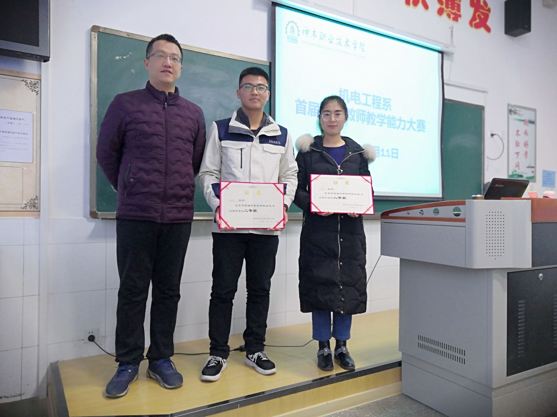 为加强青年教师队伍建设,提高青年教师教学水平,交流教学理念,展示教师风采,机电工程系于12月11日下午在教学楼3209举办了首届青年教师教学技能大赛。此次教学技能大赛重点考察教师依据信息化教学设计,实施课堂教学,达成教学目标的能力,系部自2019年新入职的九位教师参加了此次比赛。