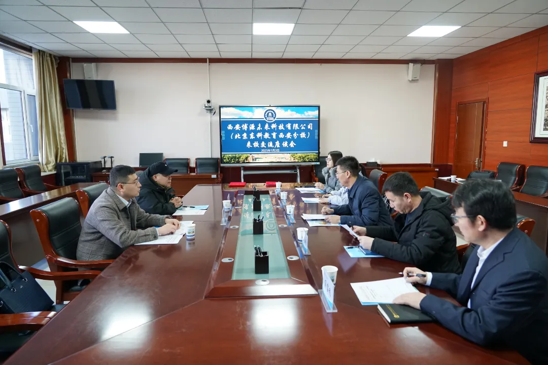 1月3日,西安博源未来科技有限公司(北京东科教育西安分校)西安分校校长杨成云、培训主任张胜保一行来到学校展开座谈。副校长李建法及相关部门负责人陪同座谈。