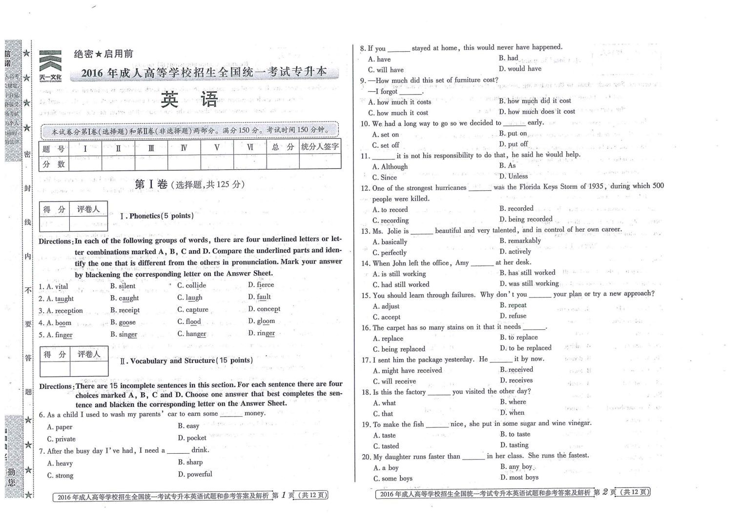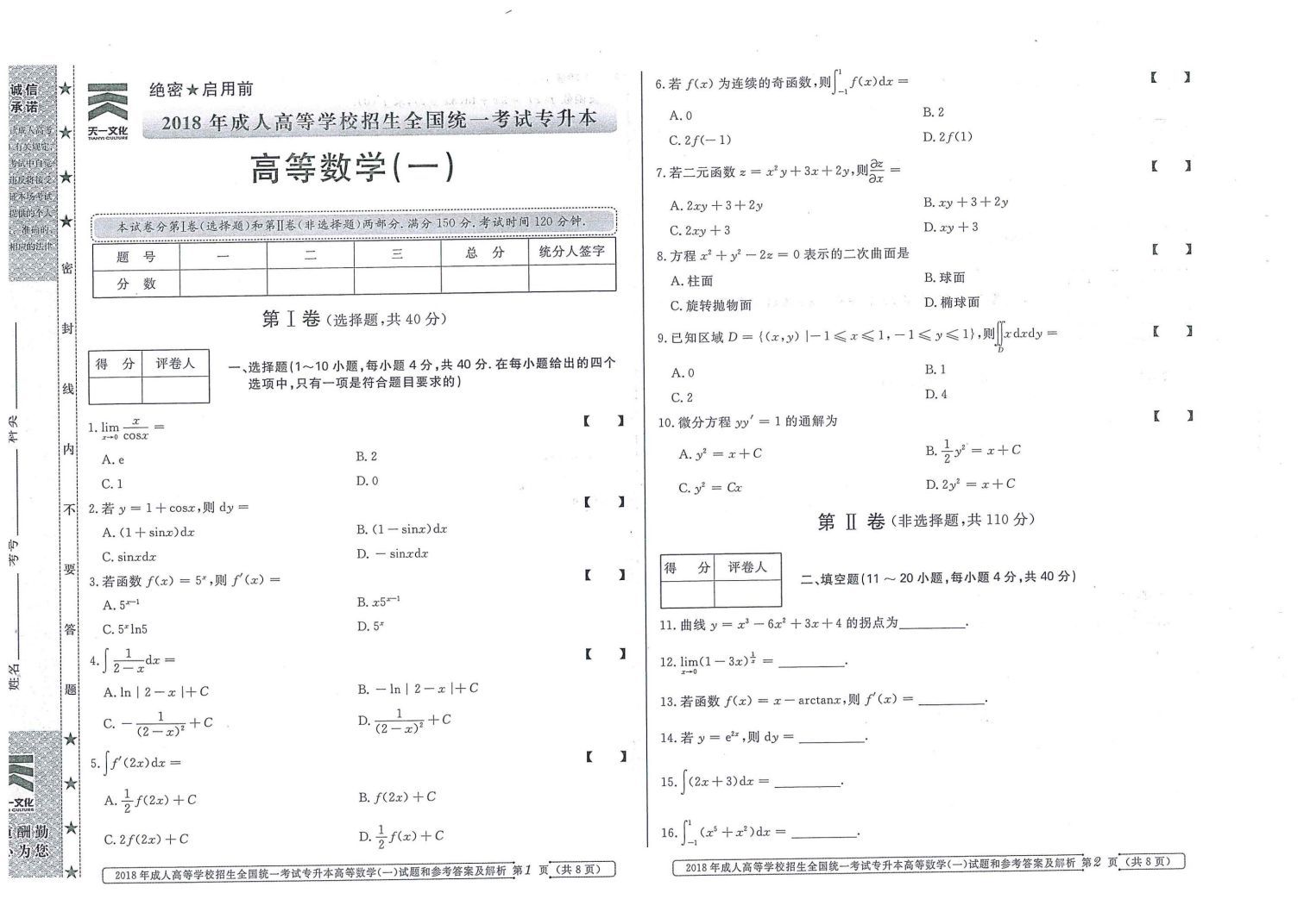 为了帮助大家更好地备考成人高考,特地上传了一系列成人高考考前复习资料,希望能对大家的备考工作起到一定的帮助作用。此次上传的资料主要以历年真题为主,希望大家能充分利用这些资源,做好考前的复习准备工作。