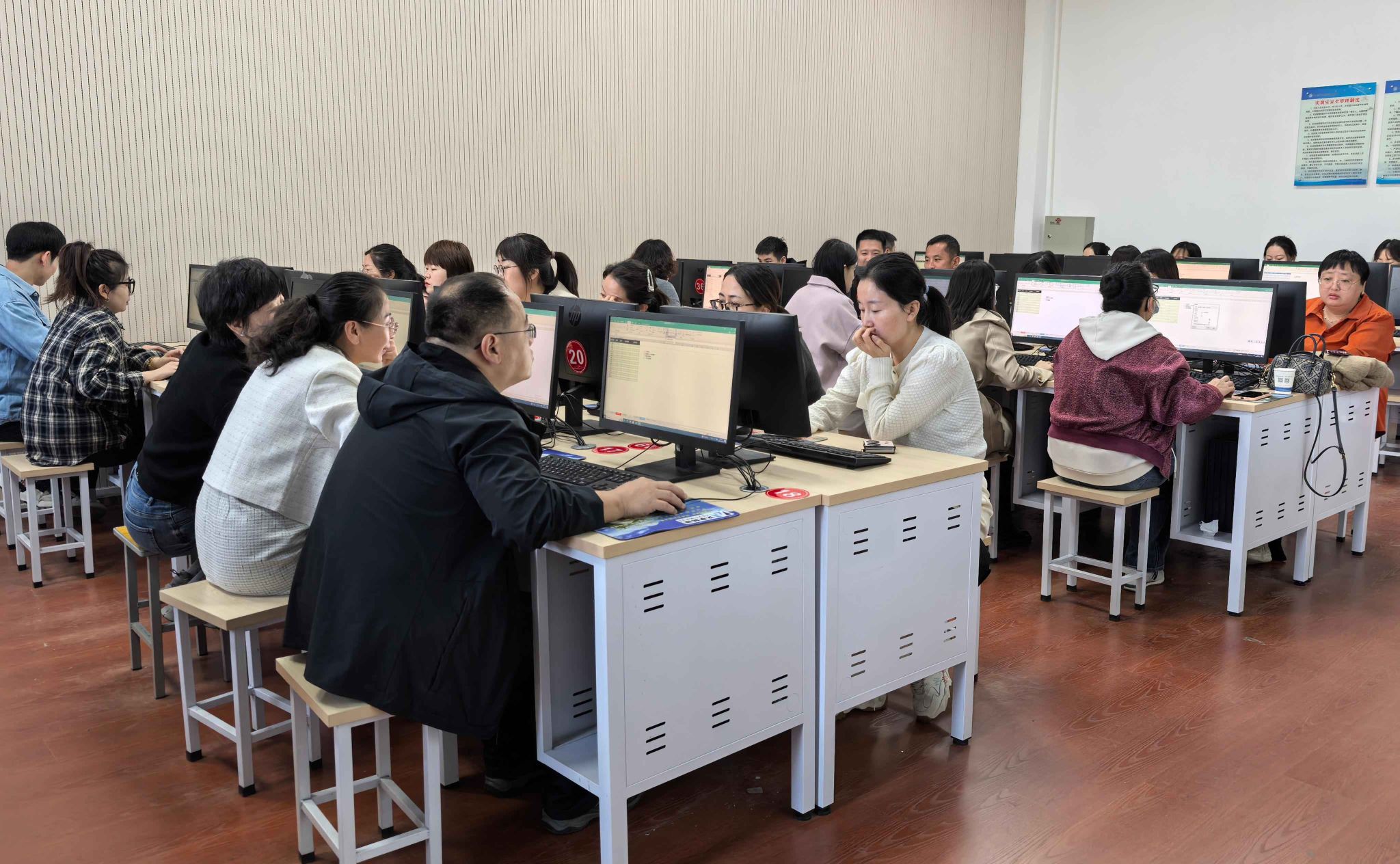学校根据市统计局需求精心设计安排课程内容。Word软件安排了页面排版技术、图文混排、表格、公文排版、公式与图表使用、邮件合并功能等内容;Excel软件开设熟练掌握数据管理与分析、公式和函数应用、图表的灵活应用、数据透视表使用等内容;PPT软件注重模板与母版使用技巧、文字、图片、图表与动画的应用,放映与展示的技巧等内容。授课老师还针对日常工作的常规操作和易犯错误作了重点提醒,直观有效地展示了办公软件在日常应用中的强大魅力,讲课深入浅出、通俗易懂。学员们认真地跟着老师操作演练,积极提问,相互探讨,现场气氛热烈。