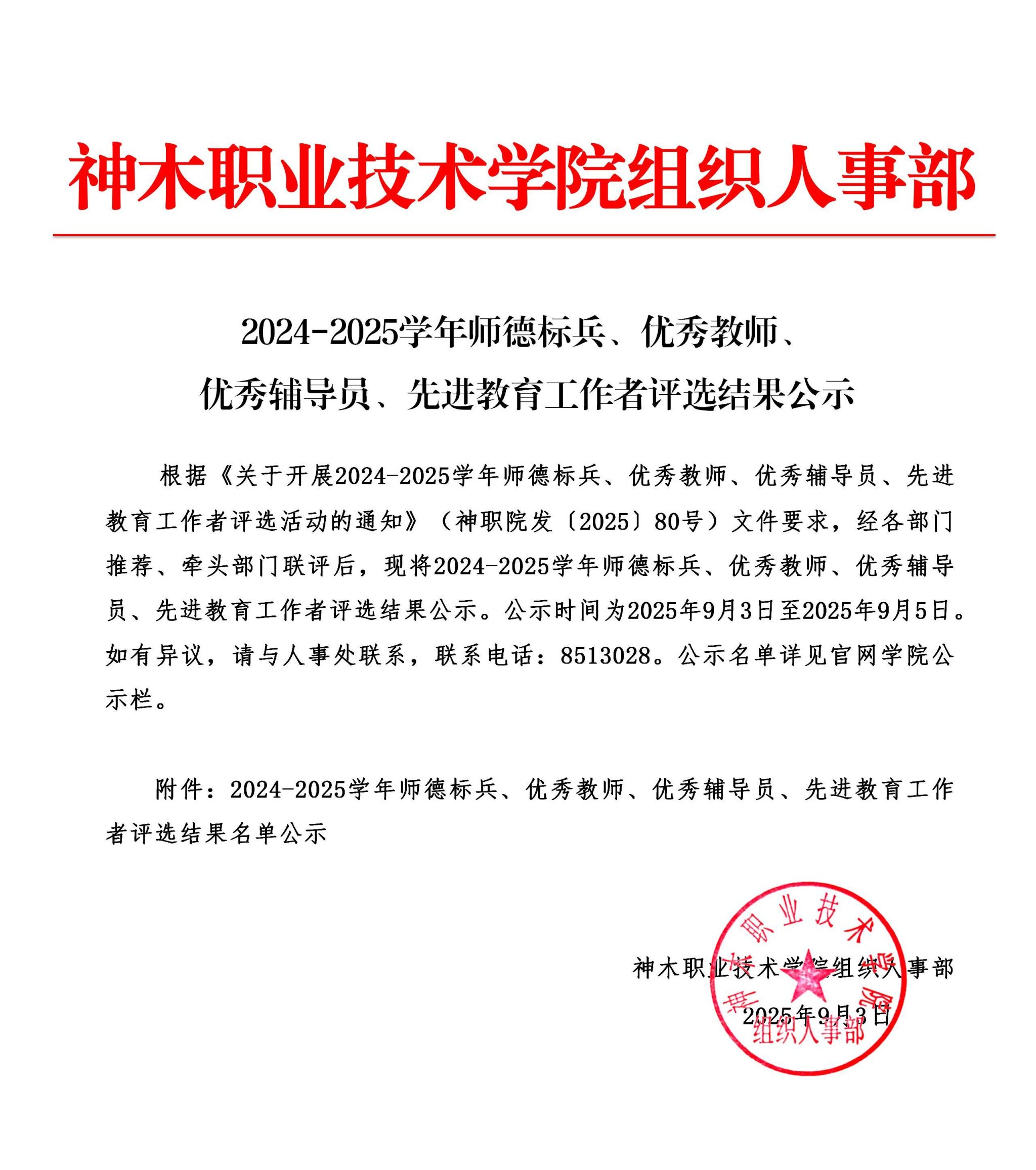 2024-2025学年师德标兵、优秀教师、优秀辅导员、先进教育工作者评先结果公示