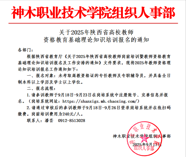 关于2025年陕西省高校教师资格教育基础理论知识培训报名的通知