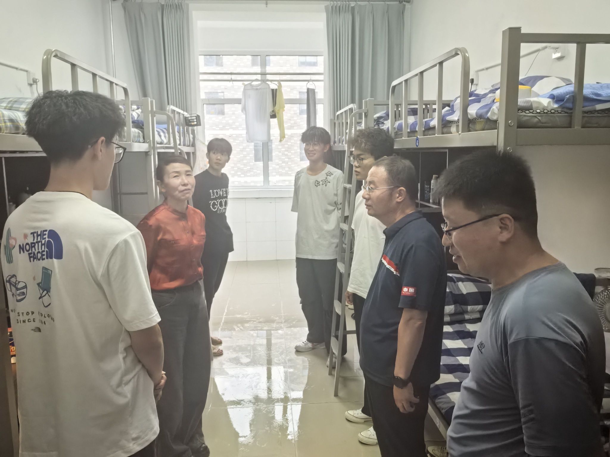 在走访过程中,郭亚芳副校长一行先后走进多栋学生公寓的宿舍,与刚入住的新生们亲切交谈。每到一间宿舍,校领导都仔细查看住宿环境,询问新生们是否适应新的生活节奏,是否存在生活上的困难。同时,通过轻松的交流,详细了解学生的家庭住址、家乡特色及入学后的感受,耐心倾听大家对学校住宿服务、后勤保障等方面的意见与建议。