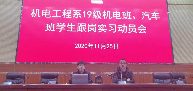 机电工程系召开19级学生跟岗实习动员会 为保证机电工程系2019级学生跟岗实习工作的顺利开展,提高学生对新环境、新岗位的适应能力,确保跟岗实习质量和学生安全。11月25日,机电工程系召开2019级学生2020-2021-1学期跟岗实习动员会。系部领导、各指导老师及...