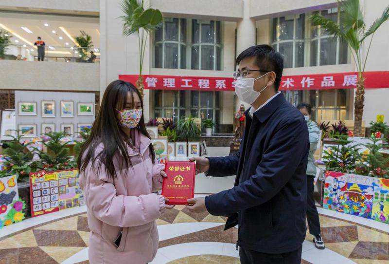 画笔绘时代 “艺”心庆元旦 管理工程系学生美术作品展 为了弘扬优秀传统文化,促进学生德智体美劳全面发展,促进我校艺术的发展繁荣,增添浓厚的文化艺术氛围,管理工程系举办了学生美术作品展。12月29日在图书馆一楼举行了美术作品展开幕仪式,实训继教处副处长王笑、教...
