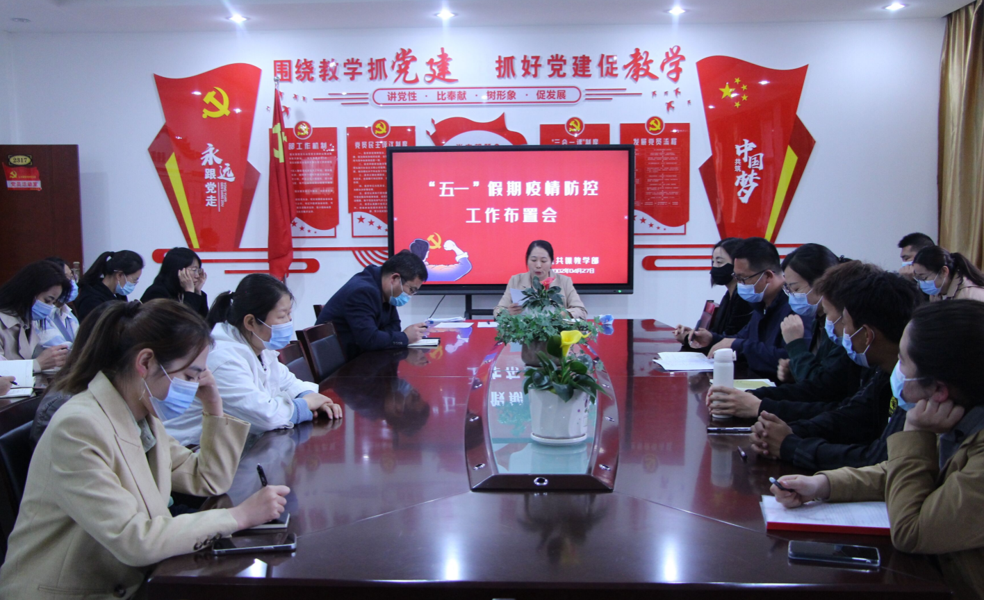 公共课教学部全面部署五一期间疫情防控工作 4月27日,公共课教学部召开五一期间疫情防控工作部署会,传达学院疫情防控工作会议精神,对全系部五一假期疫情防控工作进行再安排、再部署。系部主任贾晓霞主持会议并讲话,系部所有专兼职教师参加会议。会议指出,当前疫情防控形势依然严峻复杂,特别是“五一”假期将至,人员流动性大,疫情输入和反弹风险不容忽视。同时会议要求所有老师非必要不出市、不出省,要时刻保持高度戒备,坚决守好疫情防控底线