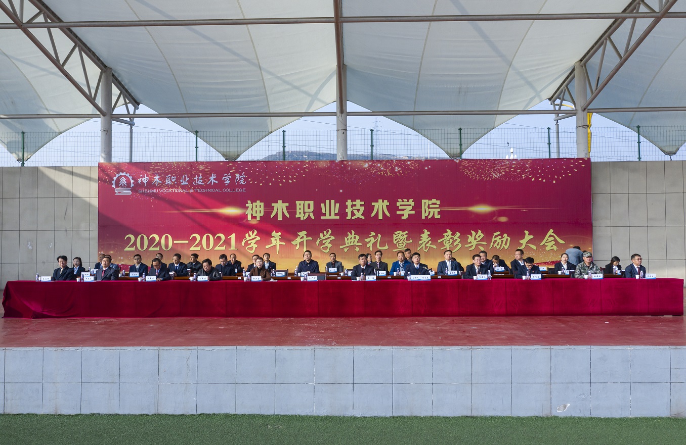 2020年10月30日上午,我校在操场举行了2020级新生开学典礼暨表彰奖励大会。校党委书记、校长艾国,党委副书记李长春,副校长李广智、李建法、郭亚芳,校长助理王宝生教授、党委委员丁中唐、军训团团长魏海斌出席大会。
