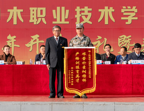 校党委办公室、组织宣传部、学生处、校团委、教务处、招生与就业指导处等相关部门负责人,新生辅导员以及全体2020级新生参加大会。副校长李广智代表学校向承训单位赠送锦旗以表感谢。党委副书记李长春主持大会。