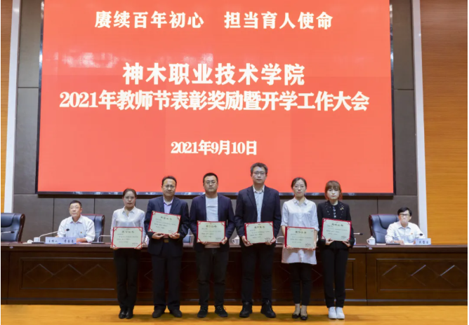 9月10日,365上市公司官网2021年教师节表彰奖励暨开学工作大会在图书馆二楼报告厅举行。特别邀请了中共神木市委副书记、市委教育工作领导小组组长蔡文东同志出席会议,校党委书记、校长艾国,党委副书记李长春,副校长李建法、郭亚芳,校长助理王宝生及全体教职工参加会议。会议由李长春主持。
