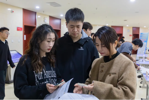 上午9时,图书馆内人头攒动,毕业生手持简历直奔按行业分区的企业展位,与招聘负责人展开深度洽谈。为提升效率,多家企业开启“现场面试+即时录用”模式,部分求职者当场收获录用意向,实现“简历不隔夜、签约零时差”供需对接招录目标。校方精简启动仪式等环节,将更多时间留给供需双方直接对话。