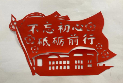 活动开始,老师先为大家剪出了一幅“不忘初心,砥砺前行”的剪纸作品,随后指导同学们完成作品。