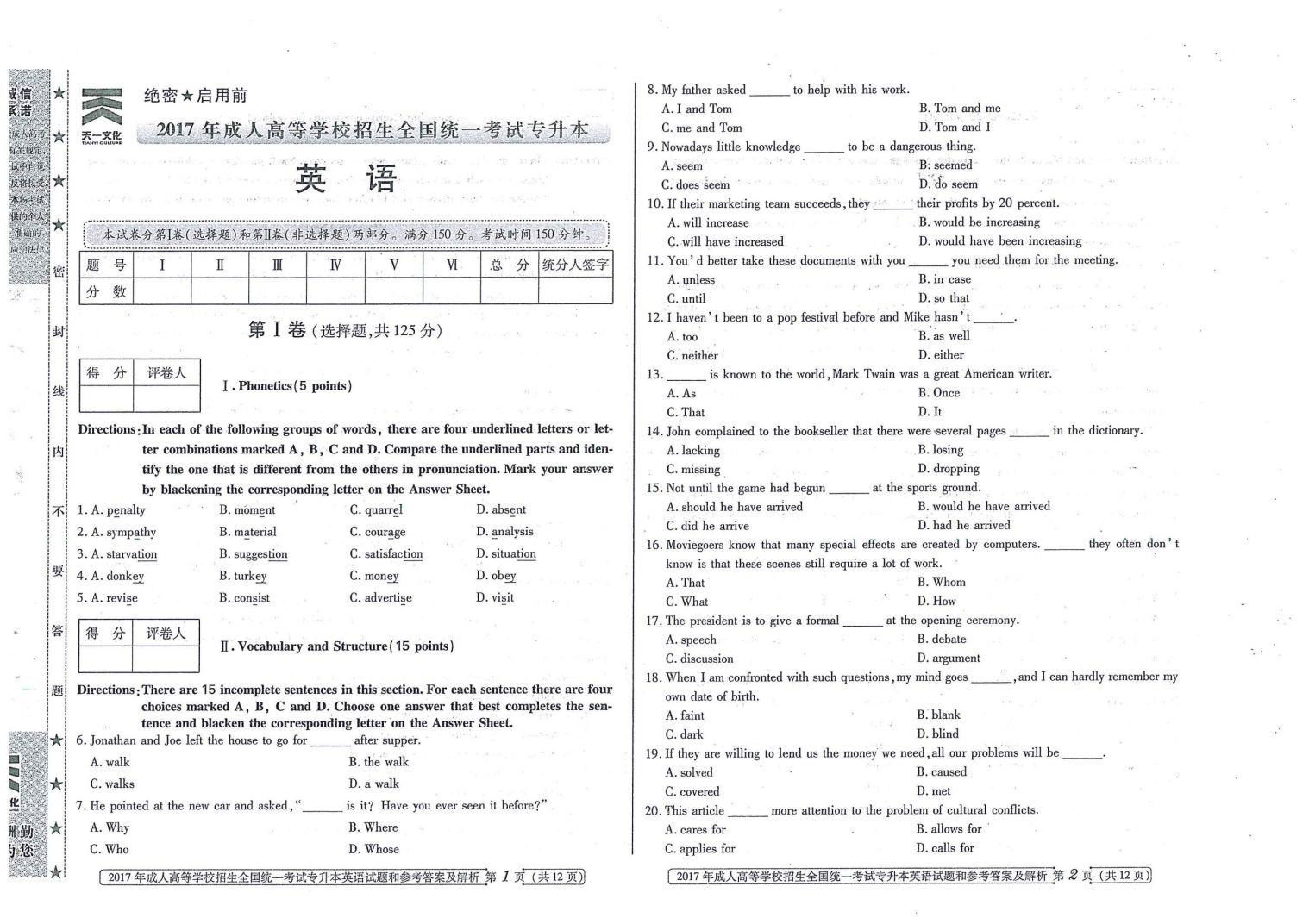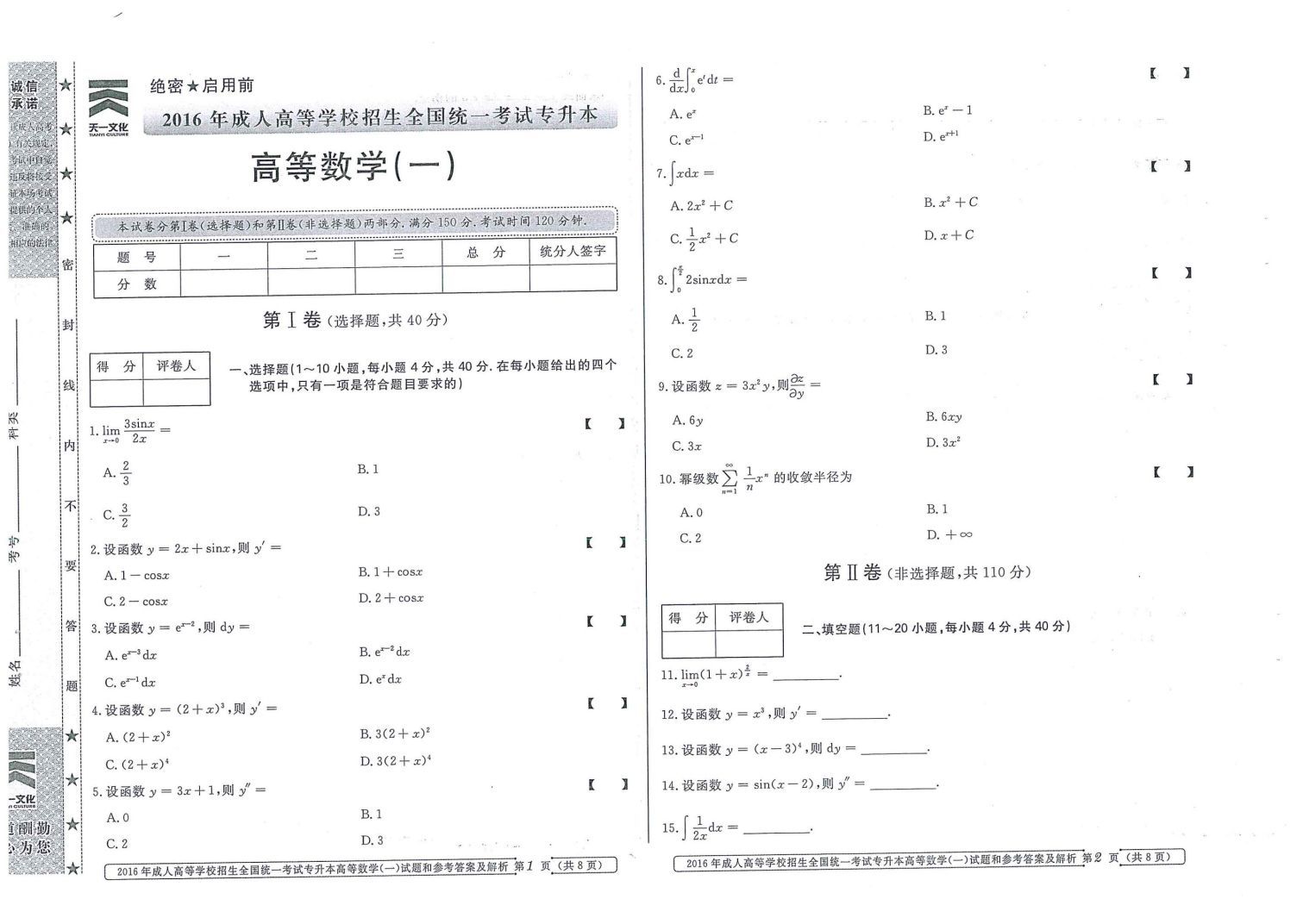 为了帮助大家更好地备考成人高考,特地上传了一系列成人高考考前复习资料,希望能对大家的备考工作起到一定的帮助作用。此次上传的资料主要以历年真题为主,希望大家能充分利用这些资源,做好考前的复习准备工作。