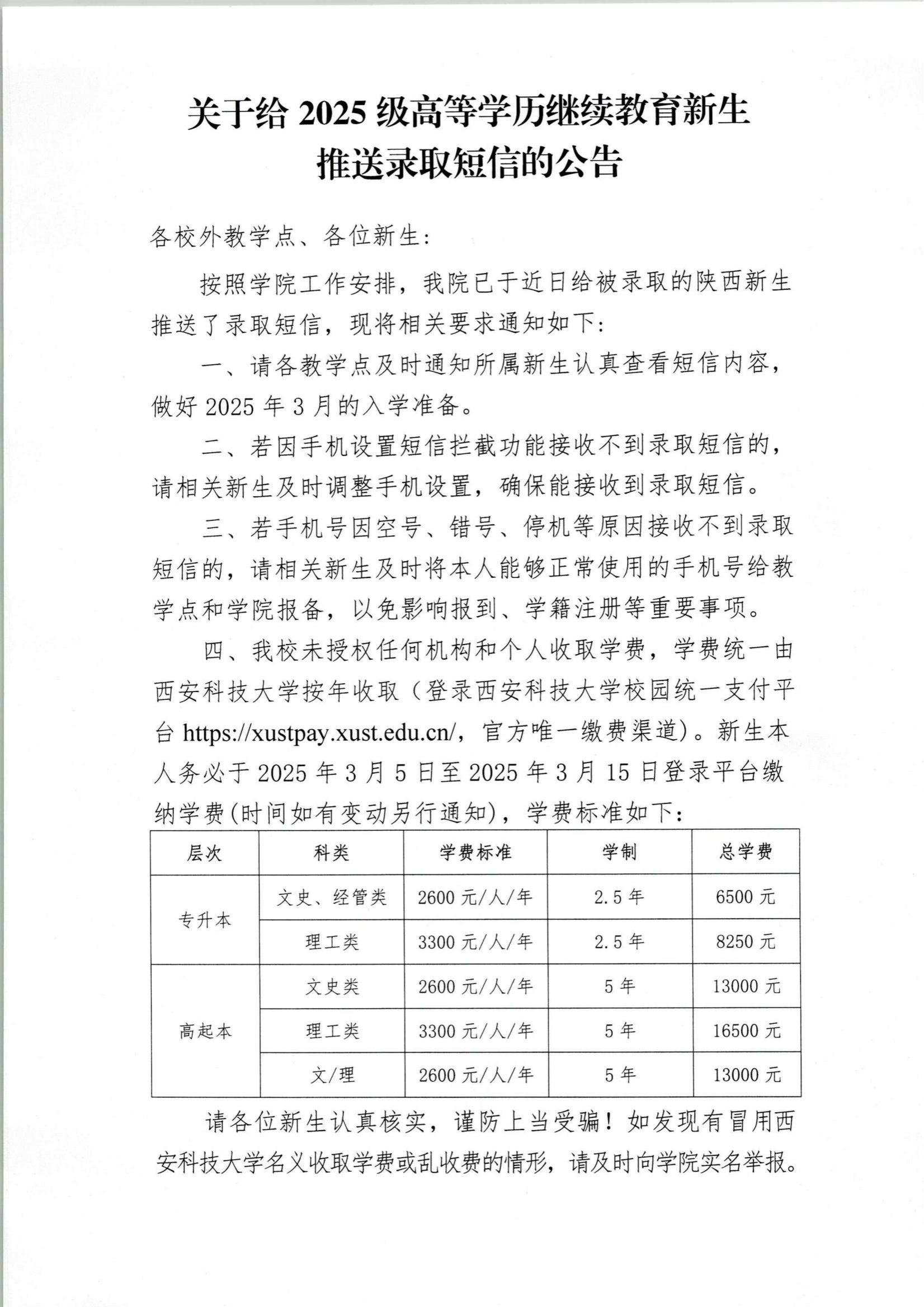 关于给2025级高等学历继续教育新生推送录取短信的公告(转)