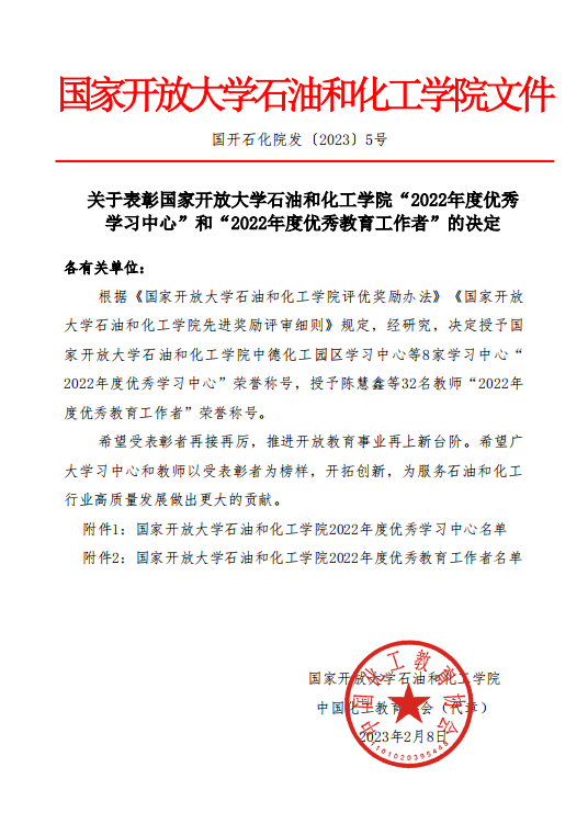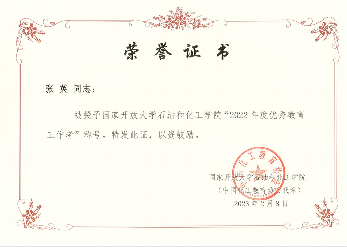 近日,国开石化学院神木职院学习中心荣获两项殊荣。学习中心成立以来,连续两年获得“优秀学习中心”荣誉称号。学习中心张英老师获得了“优秀教育工作者”荣誉称号。