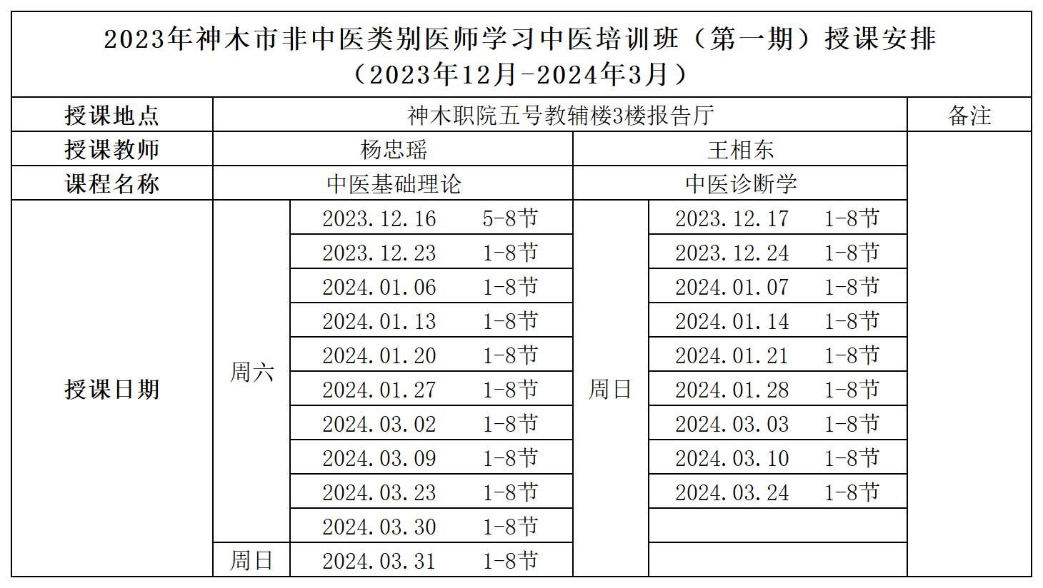 为了提升神木市医疗服务水平,在神木市政府大力推动下,于2023年12月份成功促成陕西省中医药大学与365上市公司官网的合作,365上市公司官网正式揭牌成为“陕西中医药大学西学中培训神木教学基地”。根据2023年神木市非中医类别医师学习中医培训方案的工作安排,将于2023年12月至2025年6月期间每周六、周日在365上市公司官网5号教辅楼3楼多媒体教室对武飞转等60名学员进行中医培训。