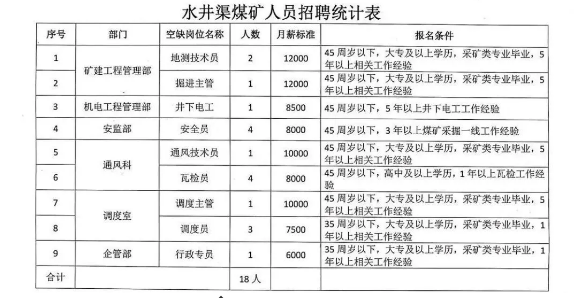 2、具有良好的职业道德,品行端正,遵守纪律,无违法犯罪记录,有团队协作精神,爱岗敬业,责任心强,能吃苦耐劳,服从煤矿岗位调剂。