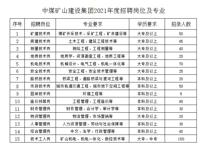 中煤矿山建设集团有限责任公司始终贯彻“以人为本,人才强企”的战略理念,高度重视人才的引进与培养,努力为广大专业技术人才创造良好的工作环境和广阔的才华施展平台,真正实现企业发展与个人事业有成的双赢。