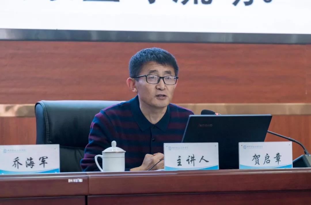 11月5日上午贺启章老师以《习近平新时代中国特色社会主义思想之人类命运共同体》为主题,旁征博引,深入浅出地为广大新教职工上了一堂生动的主题教育党课。片刻休息后,科技处副处长刘文伟为大家作了科研管理制度与项目申报培训会。刘文伟处长以课题研究流程为主线,对课题申报的时间节点、选题要领、评审标准、项目类别、研究周期、申报资格、资助额度、研究成果、项目管理办法、报销流程等各个环节进行了深入系统的解读。下午进行了教学常规制度学习和示范课的演示。教务处副主任王武林,为大家作了教学常规制度方面的讲座。王主任从制定教学计划、备课、调课、教学方法等几个方面进行了详细的讲解。接下来则是学院精心挑选出王小芳、温晓荣、冯艳、贺利飞、马艳、李霞等6名经验丰富的优秀教师为新老师们做了两次精彩示范课,新入职教师观摩示范课。通过优秀教师的示范,新教师的学习。形成教师传帮带,共同进步促进发展。