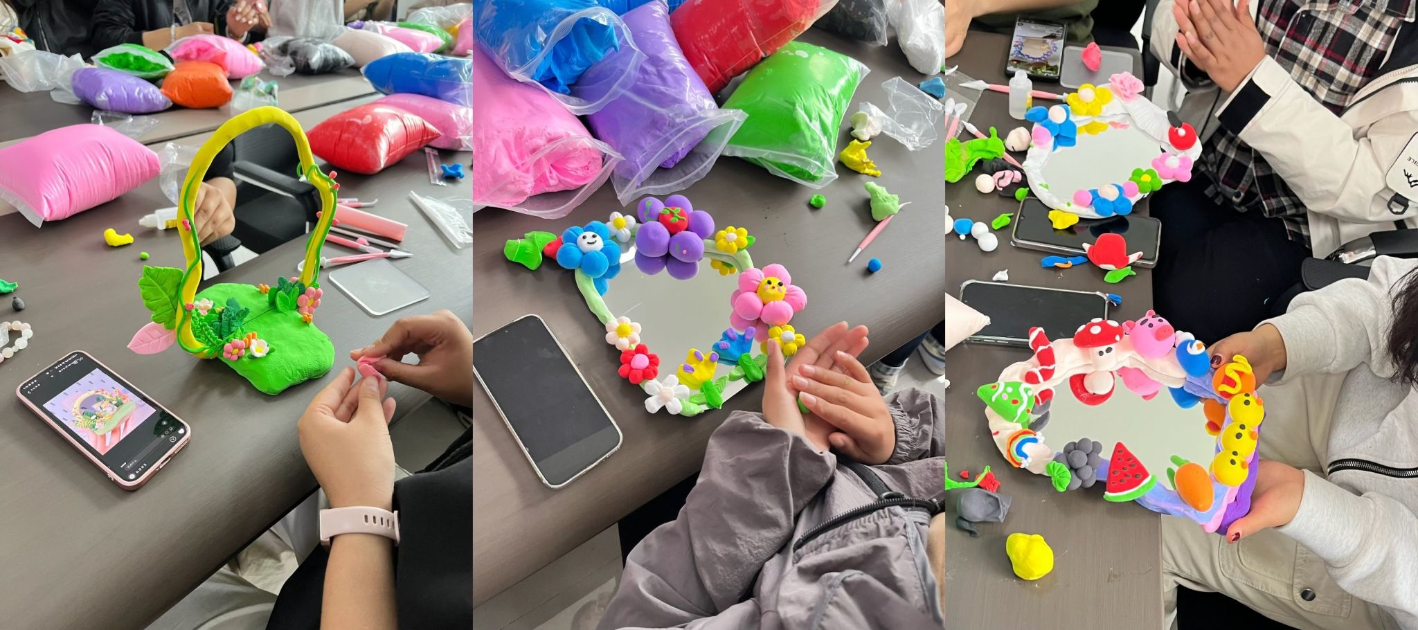 活动过程中,同学们热情高涨,积极交流创作心得与技巧,现场氛围轻松愉快。大家相互帮助、相互启发,在享受手工创作乐趣的同时,也增进了彼此之间的友谊。经过近两个小时的精心制作,一面面独一无二、充满创意的黏土镜子在同学们的手中诞生。